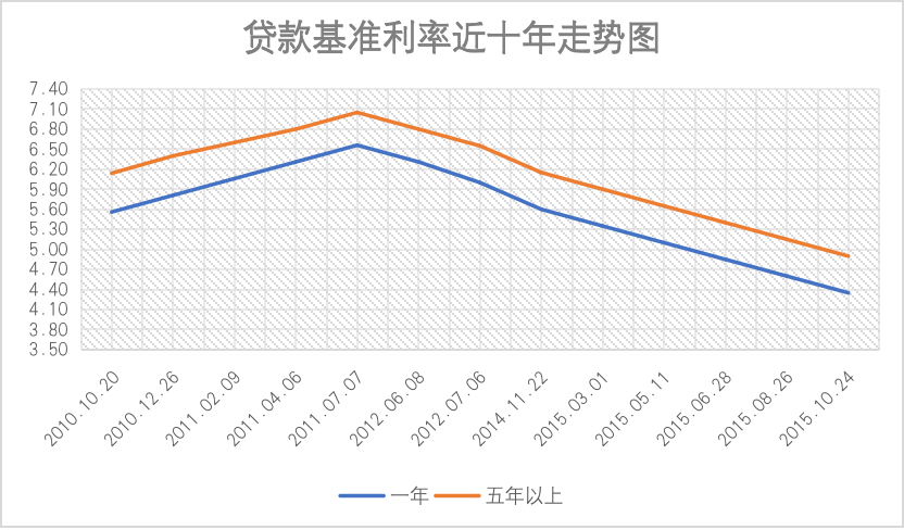 为了直观的感受利率的变化,我们选取了LPR利率执行以来的数据,以及近10年央妈原发布的“贷款基准利率”中一年期和五年以上期的利率数据进行对比。